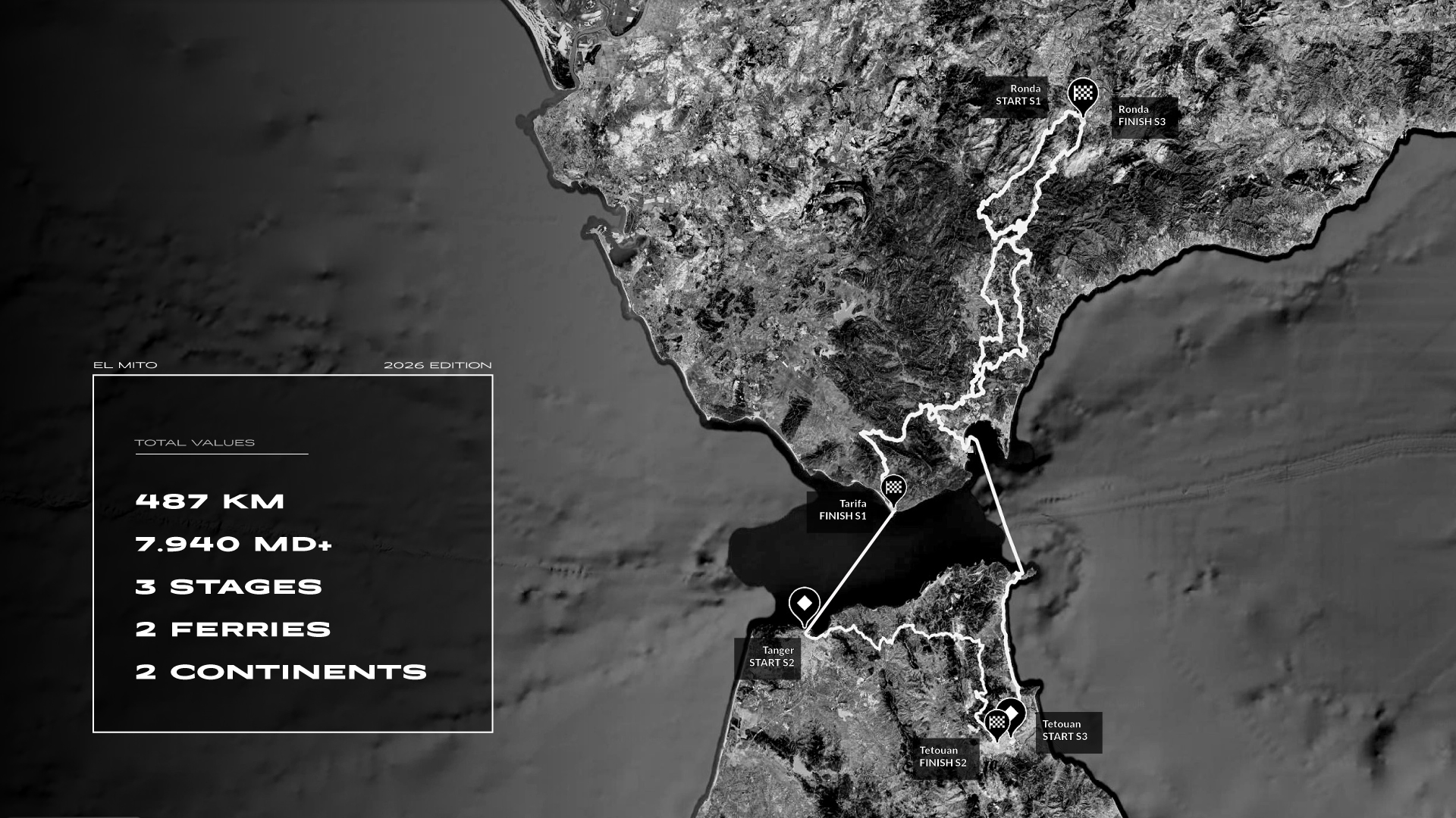 El Mito is an intercontinental gravel challenge, at the place where Europe and Africa meet. A journey from north to south of the Strait of Gibraltar, between Ronda, one of the most beautiful cities in Spain with its mythical Puente Nuevo, to Tetouan, the cultural capital of northern Morocco, which has one of the best preserved and authentic medinas in the Maghreb. Between these two points on the map, three stages, hundreds of kilometers, towns, ports and a ferry ride that connects two worlds.